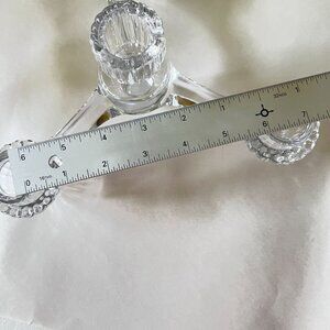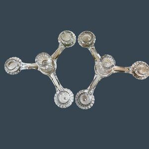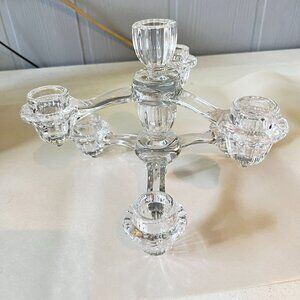 Elegant crystal candle holders with three arms, providing a sophisticated touch to table settings or decorative displays. Suitable for taper candles.