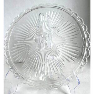 EAPG Indiana Clear Glass Serving Cake Plate Sunburst Design Scalloped Atomic Age