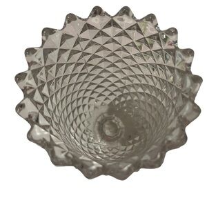 EAPG Sawtooth Diamond Hobnail Pressed Glass spooner 5 1/2 inches. Beautiful clear glass antique spooner in perfect condition. No chips, nicks or dings. This spooner is from the late 1800’s. There is a red color of something behind the spooner that is reflecting off the spooner in the photos. It is not a part of the spooner itself.