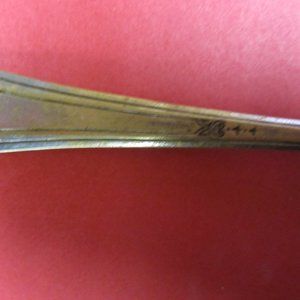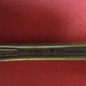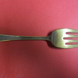 EARLY 1900'S SHEFFIELD PLATE COLD MEAT FORK W/GOLD TONE & ETCH OF HEART & FLOWER