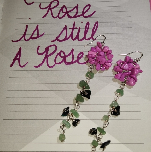 Pink rose inspired dangle earrings.