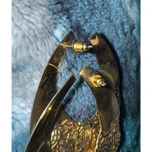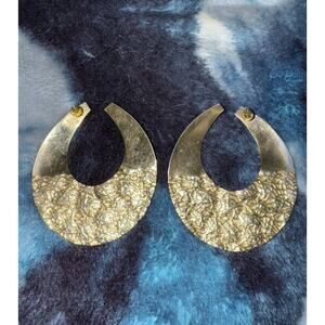 Add a touch of elegance to your outfit with these golden textured/smooth hoop earrings. The oval shape and tension closure provide a comfortable fit for any occasion. These earrings are perfect for those who love bohemian beauty and fashion. these earrings are a must-have for any jewelry collection, making them a great gift for anyone.