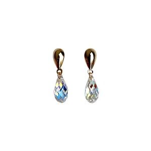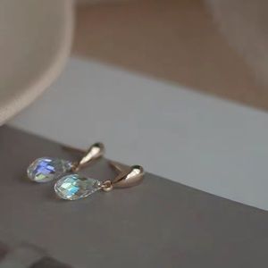 The aurora borealis earrings have a coating at the back and that creates this unique look. The drop earrings are more sky blue on a dark background and clear blue orange on a dark background.