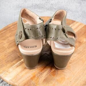 EARTH Attalea Barbados Women`s Leather Forest Green Wedge Sandals Sz 8.5M