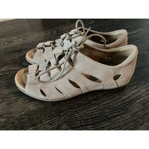 EARTH Comfort Sandals Leather Lace Up Taupe Beige NWOB Size 7