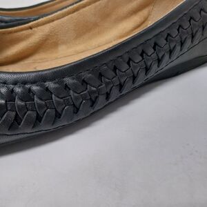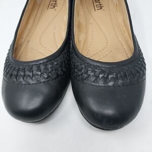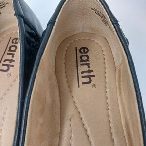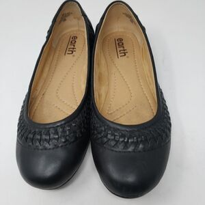 EARTH LEATHER SLIP ON FLATS. JETT BLACK. SIZE 8M.