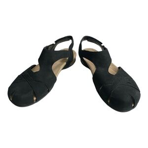 Earth Origins Birdine Womens Black Leather Slip Resistant Casual Everyday Sandals Size 9 M. Excellent used condition!