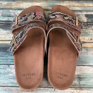 EARTH ORIGINS Orra Slide Sandals Womens Size 8.5W Multicolor Leather Snake Print