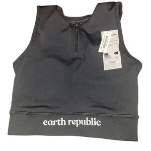 EARTH REPUBLIC WOMENS Axelle SPORTS BRA BLACK ZIP FRONT HIGH SUPPORT SIZE XS