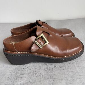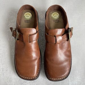 EARTH SHOES Women's 8.5 Brown Leather Clogs Mules Comfort Chunky Shoes