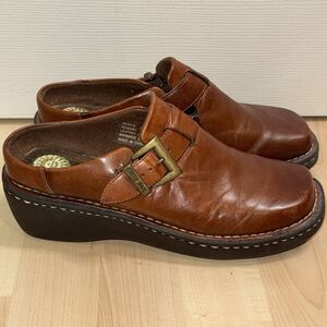 EARTH SHOES Women's Size 8.5 Brown Leather Shoes Slip-on Clogs Mules