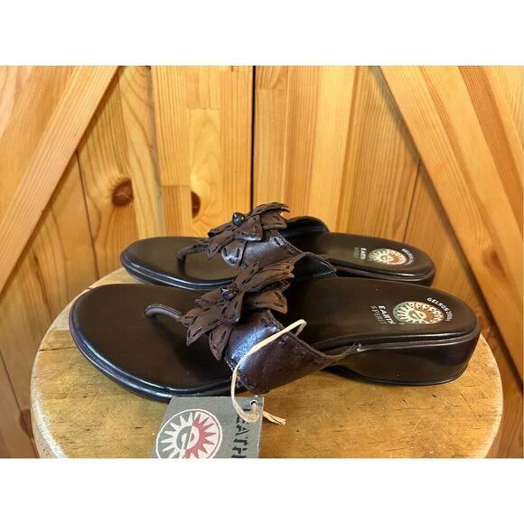 EARTH SPIRIT Women's Size 9 Gelron 2000 Sherwood Brown Leather Flower Sandals nwt no box has a minor mark on side see pictures