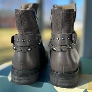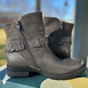 EARTH Stone Gray Multi Leather Suede Artistic Onyx Bootie Size 6 36.5 Zip Artsy