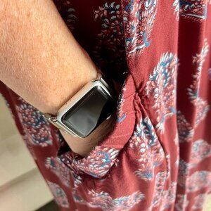 Embrace bohemian vibes with this beautiful floral print maxi dress from Earthbound Trading Co. Featuring a vibrant red backdrop adorned with a colorful floral pattern, this dress is perfect for summer days or layering into the fall. The flowing maxi silhouette provides comfort and effortless style, while the convenient side pockets add functionality.