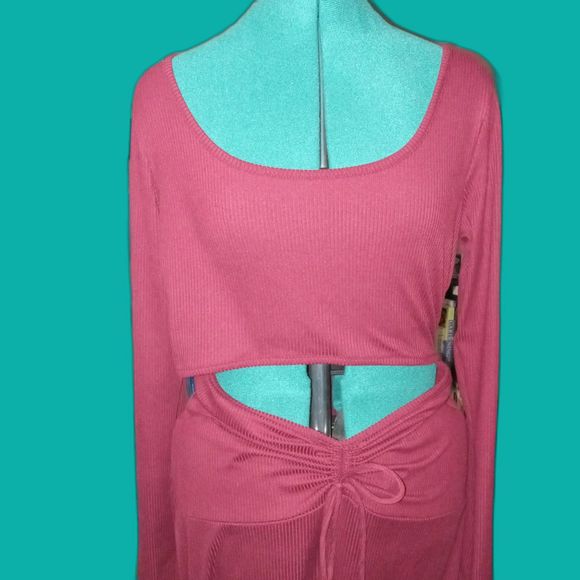EARTHBOUND TRADING Women XXL Long Sleeve Maxi Cut-Out Ribbed Dress
