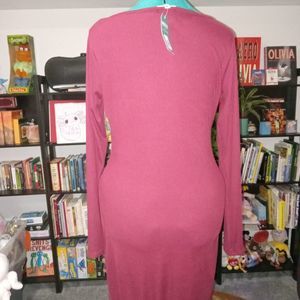 EARTHBOUND TRADING XXL Long Sleeve Maxi Cut-Out Dress Ribbed Maroon NEW with Tag