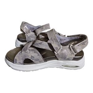 EARTH Cedar Kushma Gray Camo Shimmer Cushioned Sporty Sandals - Size 10