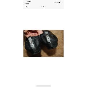 Very nice black leather EARTHIES elasticized edge flats, size 8.5 B. Style name is TOLO. Heel height is approximately 1” and sole is slip resistant material. The back edge is elasticized. The back of the heel has a little strap which folds back on itself and has a little round metal button. Insole is very nicely cushioned, especially the arch. They are in wonderful condition and from smoke free home.