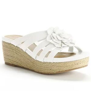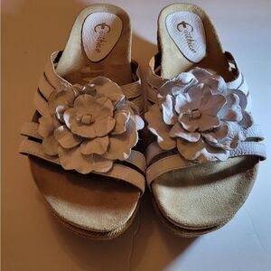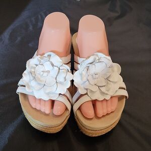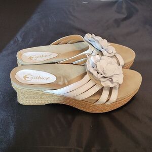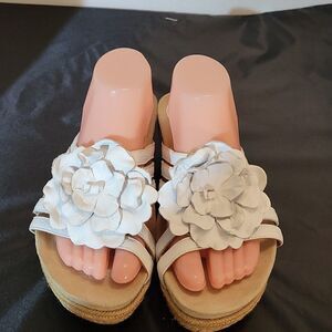 EARTHIES VALECIA FLOWER EMBELLISHMENT WOMEN'S ESPADRILLE WEDGE SANDAL WOMEN"S WEDGE SANDAL SIZE 10B Product Details Featuring a flower embellishment, these women's espadrille platform wedge sandals are fun and fashionable. Shoe Features Floral embellishment Espadrille platform wedge Shoe Construction Manmade upper & lining TPR outsole Shoe Details Open toe Slip-on Padded footbed heel height measurements apron 2.5-in heel 1-in. platform THIS IS A PRE-OWNED EXCELLENT CONDITION WITH ONLY LIGHT SIGNS OF WEAR IF ANY CHECK THE PICTURES