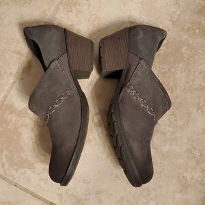 EARTH ORIGINS Gray SUEDE LEATHER step in , slip on CLOG SHOOTIE size 8.5 Wide. New, Never worn, no original box. Comes in a plain box. The footed is padded for comfort, has a flexible rubber sole. 2 in. heel.