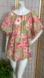 EASAL Boho Floral Peasant Oversized Tunic Blouse Back Adjustable Neck Tie • Puff Balloon Short Sleeves • Flower Patterns in Pastel Pink Peach & Green