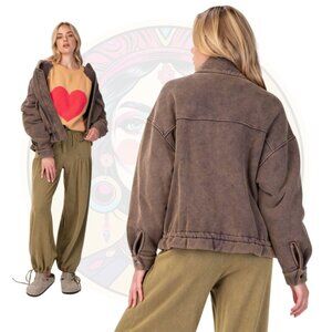 EASEL 726N Washed Zip Up Bomber Jacket Ash Navy Brown