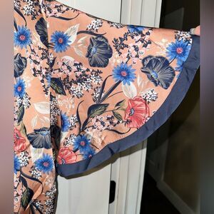 This is a beautiful blouse. It is new with tags. It has an elastic bottom. The material is very soft.