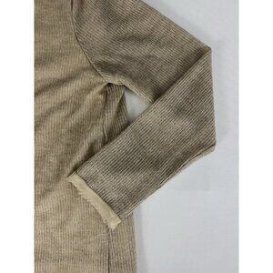 EASEL Beige Gauzy Knit Overlay Sweater Scoop Neck Raw Hem Pullover Sz L