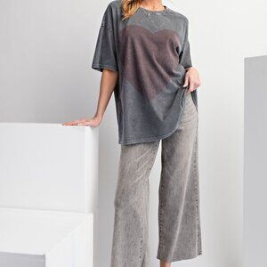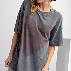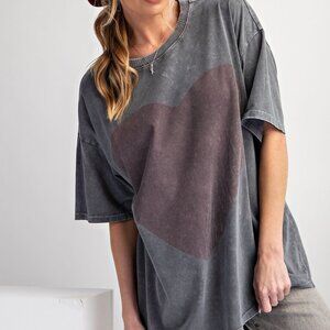 This is an adorable 100% cotton top by Easel Clothing of Los Angeles. The top features a mineral washed knit in a soft medium grey color with a printed heart in a faded medium pink. The official color name for this top is Ash. Available sizes are Small, Medium, and Large. The fit of this top is considered relaxed and loose, so please consult the measurements to be sure this top will work for you. The measurements listed were taken from one actual sample of each size and may vary.