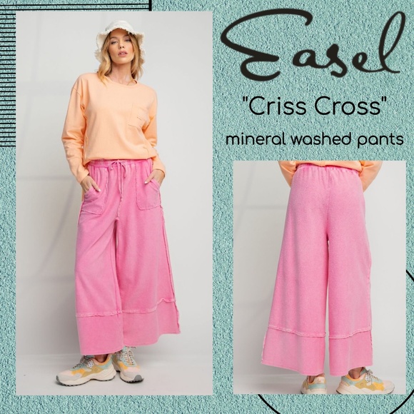 Luxury boutique label Easel (found at fine retailers like Anthropologie and Nordstrom's) popular "Criss Cross" style mineral washed pants