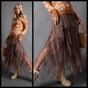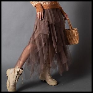 EASEL "Fairy Tale" Tiered Mesh Overlay Waterfall Lined Midi Maxi Balleri…