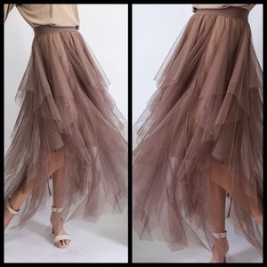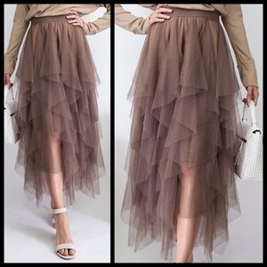 EASEL "Fairy Tale" Tiered Mesh Overlay Waterfall Lined Midi Maxi Ballerina Skirt
