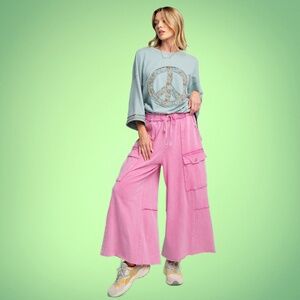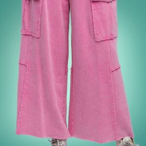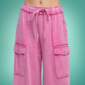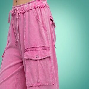 Luxury brand EASEL (found at fine retailers like Anthropologie and Nordstrom's) Feeling Good Cargos utility style pants in bubble gum