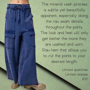 EASEL “Feeling Good Cargos” Mineral Washed Flared Leg, Raw Seams & Hems, Pockets