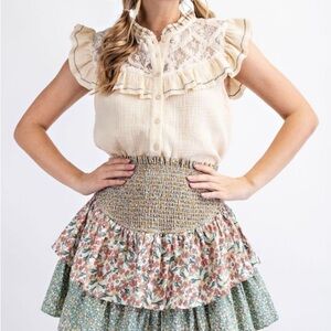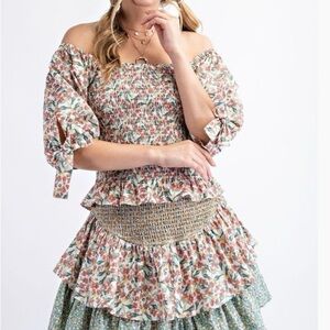 EASEL Floral Off-Shoulder Smocked Top and Skirt Set Boho - NWT