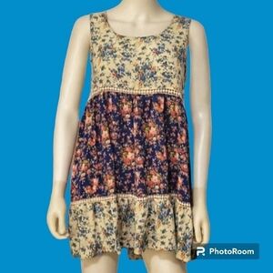 EASEL Floral Rose Colorblock Sleeveless Peasant Swing Fairycore Micro Dress
