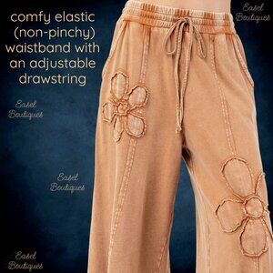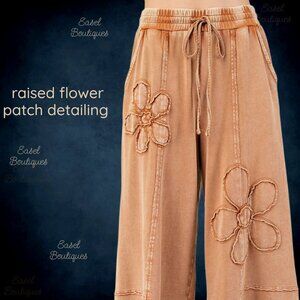 EASEL “Flower Power” Mineral Washed Pants Wide Leg Cozy Relax Fit Raw Seams Hems