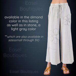 🔹 Luxury boutique label Easel (carried by fine retailers like Anthropologie and Nordstrom's) Flower Patch Pants in STONE (light gray)