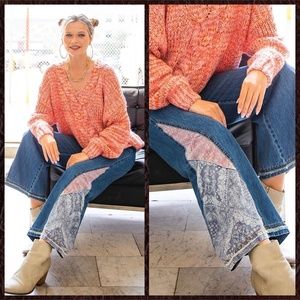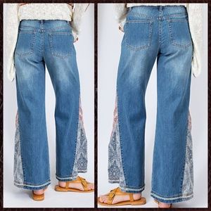EASEL "I Got A Feeling" Bell Bottom Denim Pant W/Contrast Patchwork At The Sides