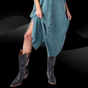 EASEL “Irresistible” Lux Mineral Washed Buttoned Relaxed Fit Shirt Dress Pockets