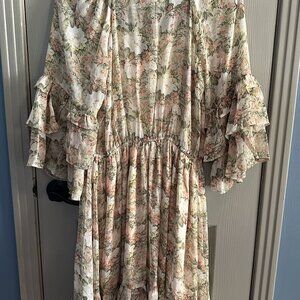 EASEL Los Angeles Ruffled Sleeve Dress Faded Sage Floral Size L