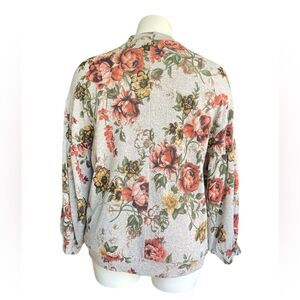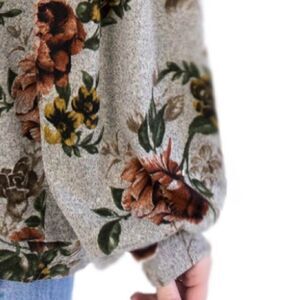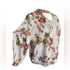 EASEL MOCK NECK M VINTAGE FLORAL TUNIC OATMEAL choker neck balloon sleeves banded wrist.Vneck that is flowy and comfortable flattering