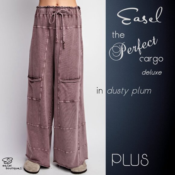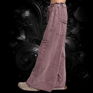 EASEL "Perfect Cargo Lux" Terry Knit Mineral Washed Flared Leg Raw Hems & Seams