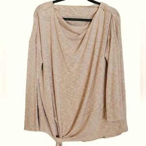 Super cute but just too big for me.. oversized, slouchy cut in a peachy-beige knit.