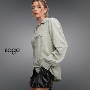 EASEL "STAR STRUCK" Embroidered Silk-Like Mineral Wash Button Up, Cuffs, Pockets