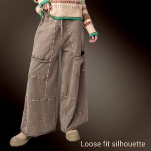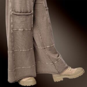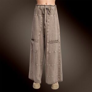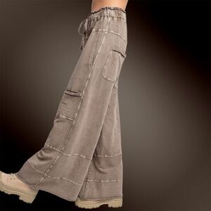 EASEL "Select Comfort" Premium Mineral Washed Wide Leg Pants Raw Hem Seam Detail