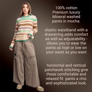 Easel has perfected the art of mineral washing & have several lines of beautiful pants in a variety of styles & colors. This new style has a more tailored look to them due to the horizontal and vertical decorative seam detailing. These pants are the best of the best of Easel's mineral washed line.