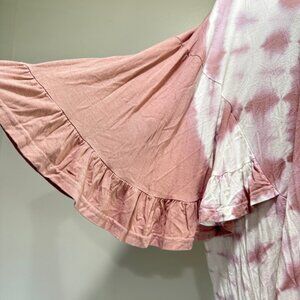 EASEL Tie Dye Flutter Sleeve Heart Top