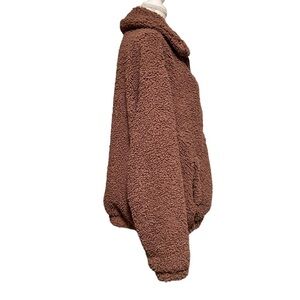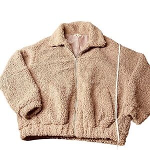 EASEL WOMENS OVERSIZED LIGHT MAUVE TEDDY ZIPPERED JACKET SIZE MEDIUM