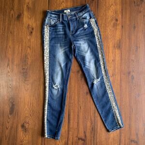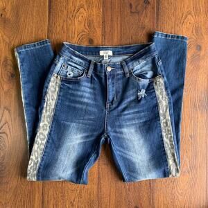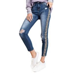 EASEL Women's Denim Jeans with Leopard Print Side Detail M